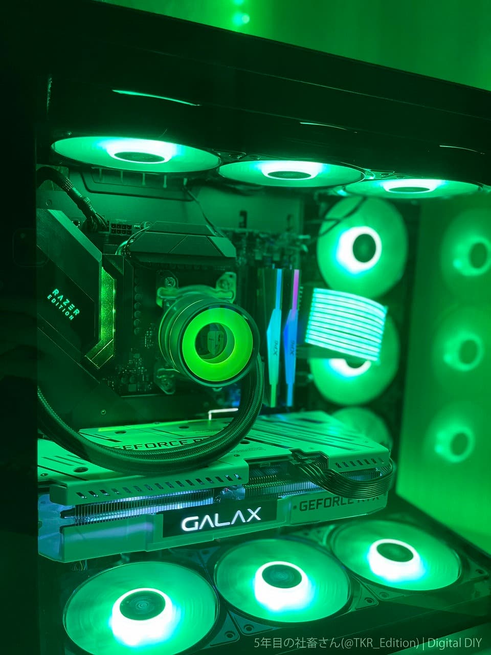 | その他 | Deepcool RF120M ×9 Deepcool Castle 360EX LIANLI STRIMER PLUS 24PIN Razer TARTARUS V2 Razer Base Station Chroma Razer Charging Pad Chroma  |