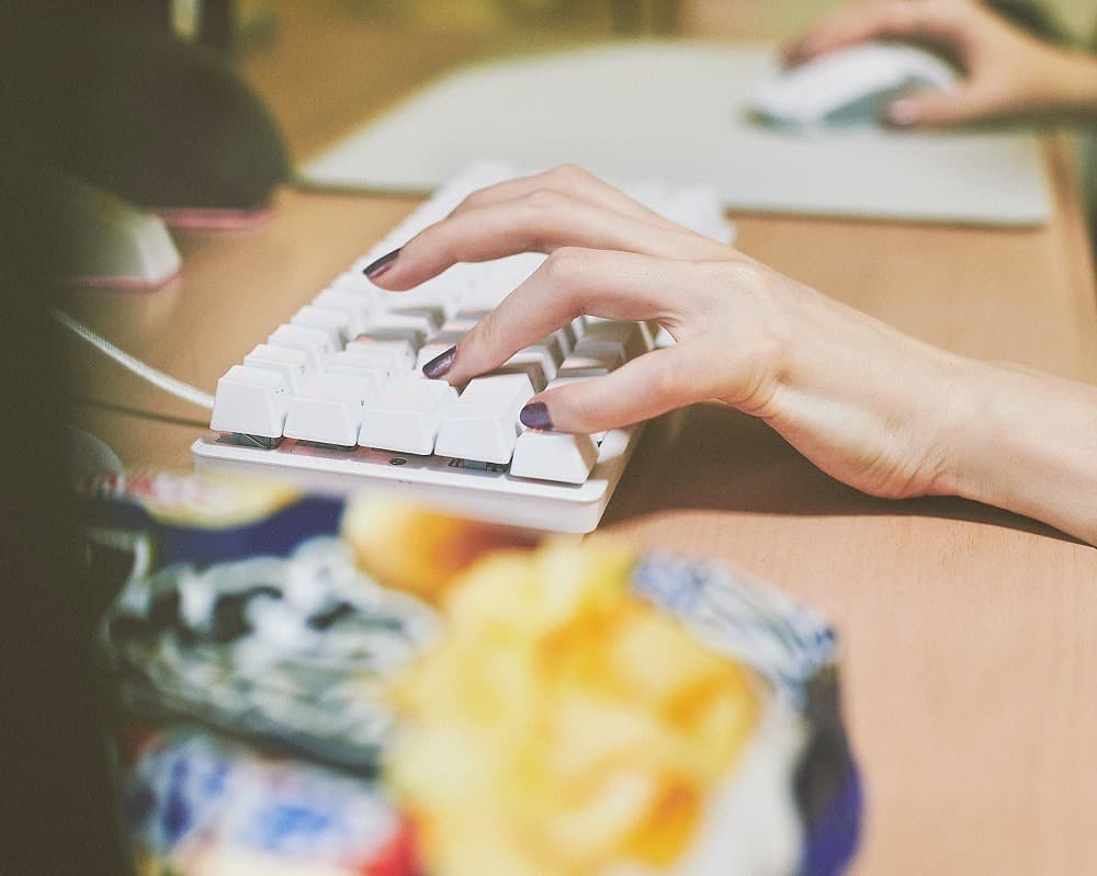 ゲームをしながらポテチを食べるのが好きだというるなさん。机のうえにはお気に入りのポテチを常備!